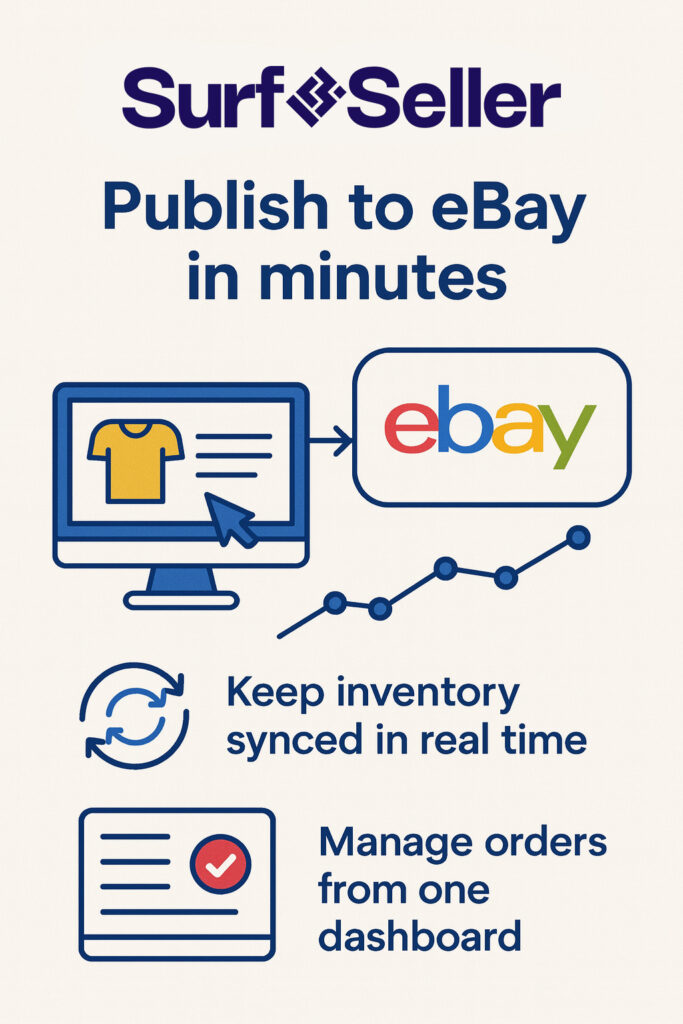 List once, publish everywhere: Create listings in Surfseller and publish to eBay plus other channels in a click.